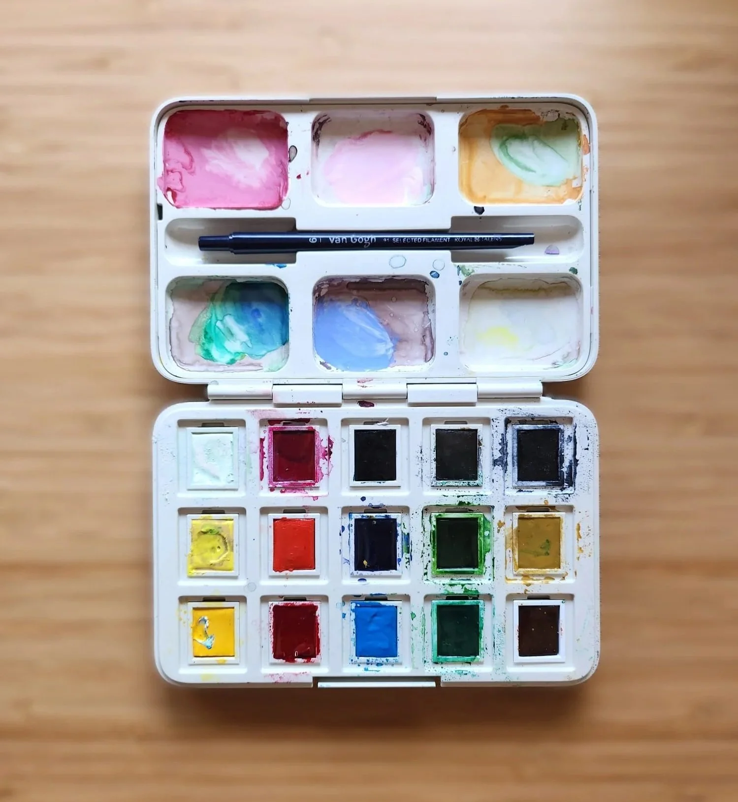 I eventually ended up with a Schmincke Horadam set, thanks to my very supportive husband who gifted it to me, and I’ve been using it ever since. More recently, I tried a student-grade Van Gogh set during a workshop, and it performed really well with strong, vibrant colors.